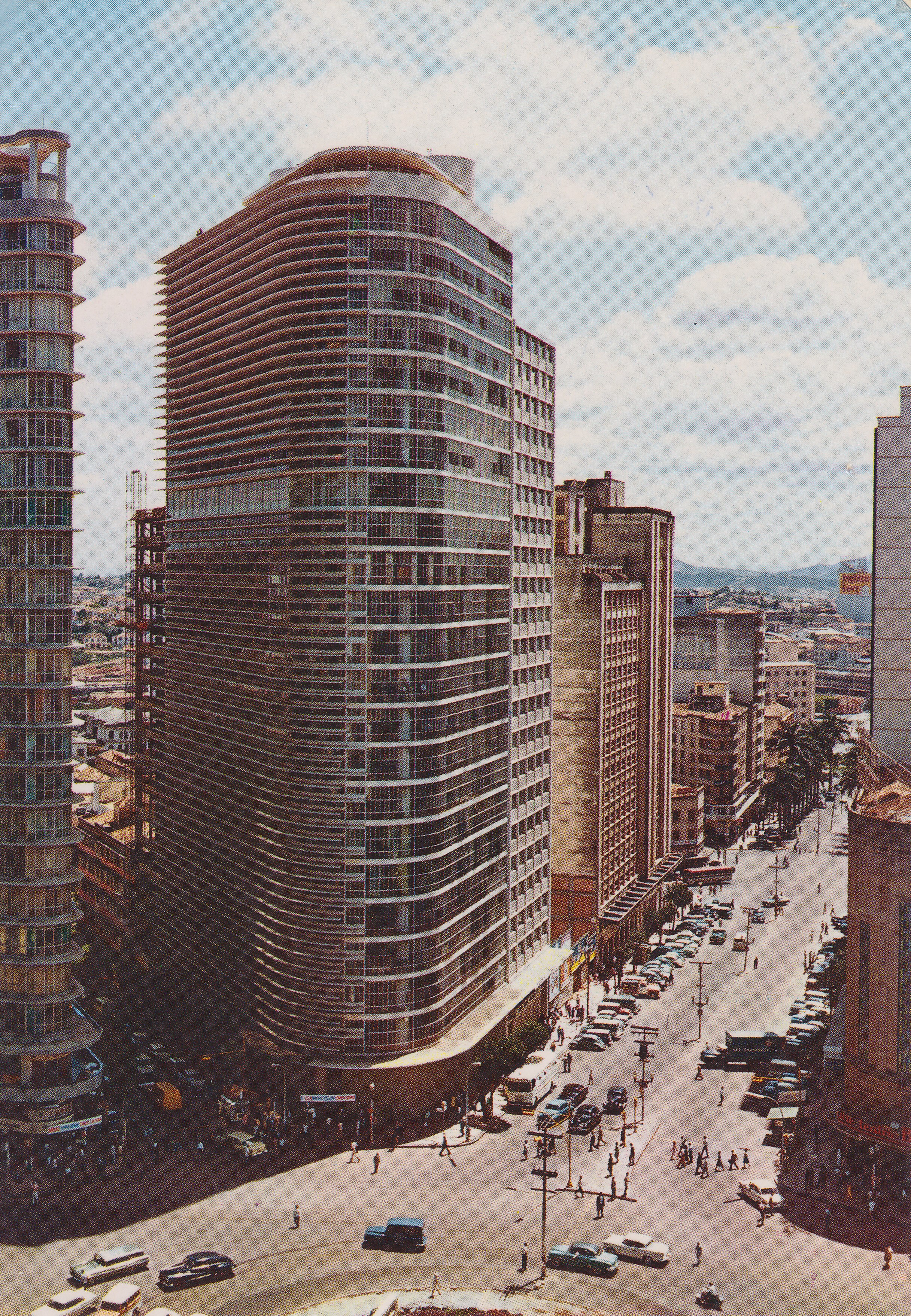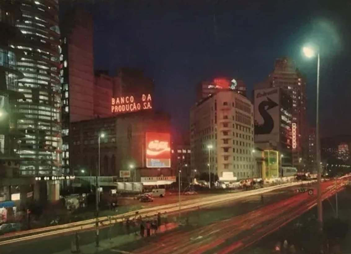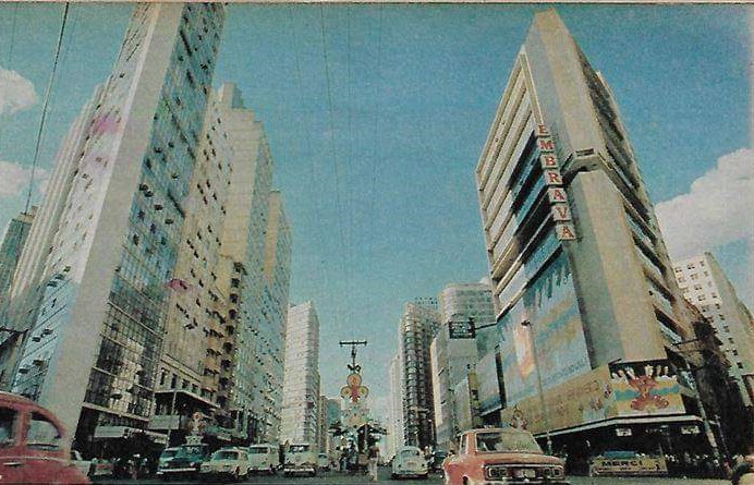 Prédio da Embrava, na Afonso Pena à noite, anos 70